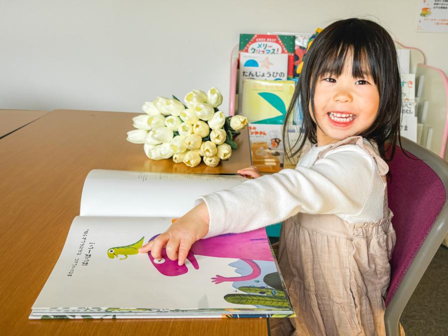 現在、約300冊ほどの絵本をそろえており、地域の方にご利用いただける貸し出しも行っています📚✨