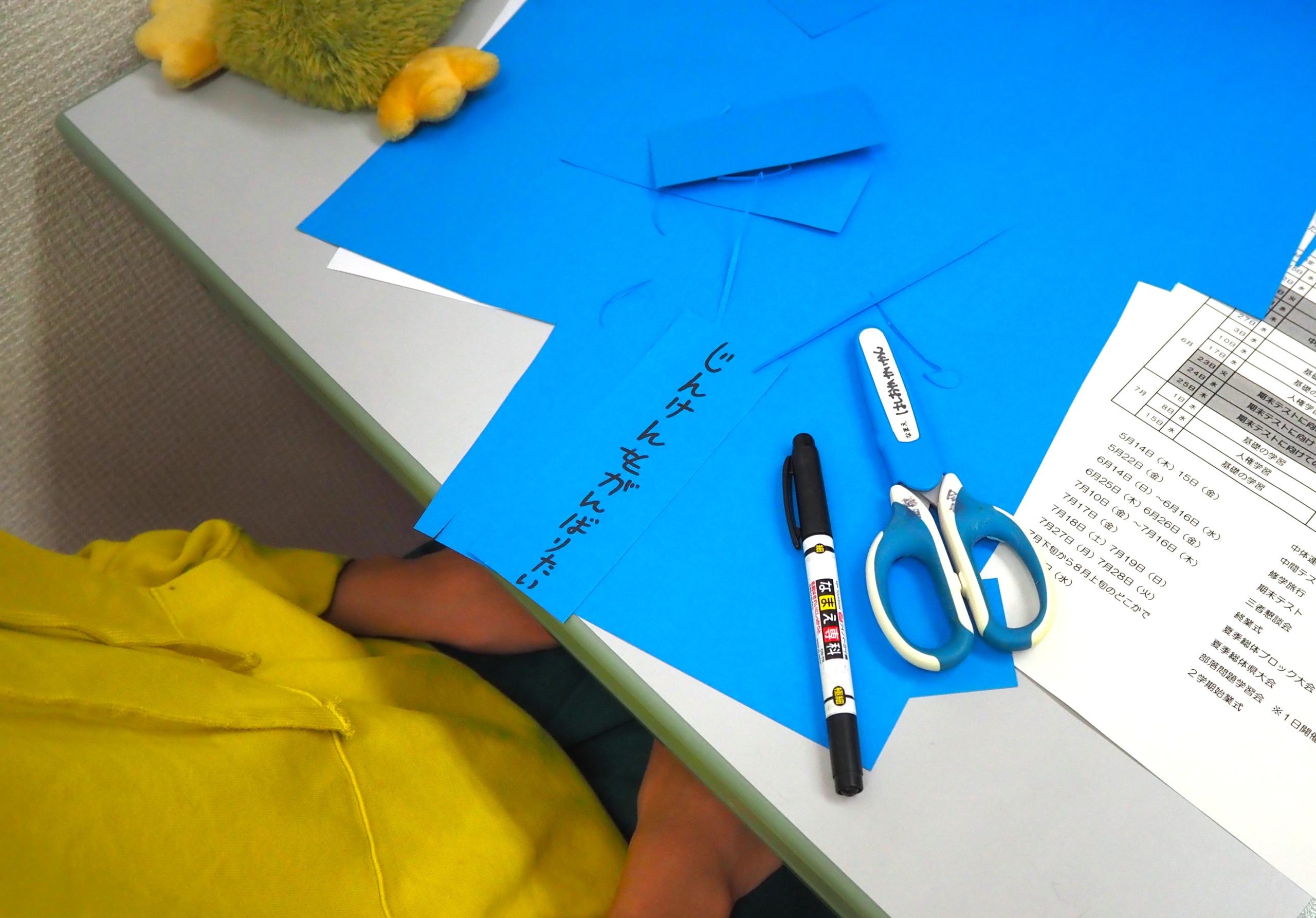 開講式のあとには、それぞれの目標を短冊に書きました。